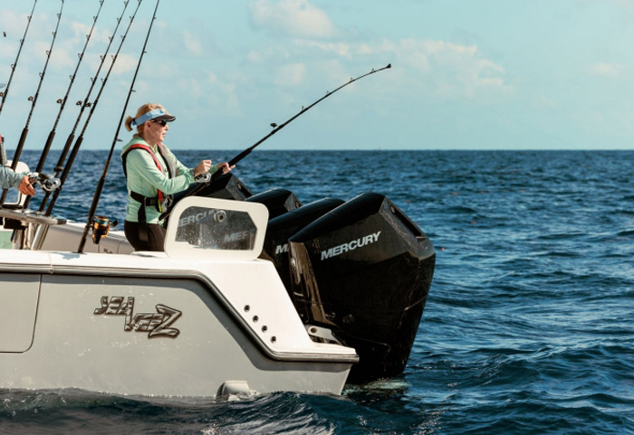Os motores de popa Mercury® 5.7L V10 350 e 400hp Verado® continuam o legado da lendária família de motores Verado de proporcionar excelência em desempenho marítimo. Com a força do primeiro motor V10 naturalmente aspirado do segmento de motores de popa, eles disponibilizam potência e capacidades extraordinárias para você poder explorar com confiança além do horizonte. Assuma o comando da água com as inovadoras tecnologias SmartCraft® e controles digitais avançados que facilitam a navegação. Excepcionalmente suaves, silenciosos e refinados, os motores de popa Verado transformam sua experiência de navegação.